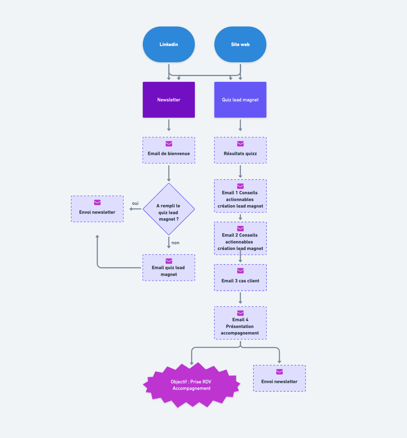 Je te partage 2 fois par mois, des conseils concrets pour créer ou optimiser ton tunnel de ventes e-mail : lead magnet, segmentation, stratégie e-mail... Sors ton stylo car tout ce que je te partage est applicable tout de suite. 👌